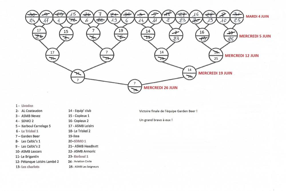 Consolante - Finale - Résultats jeu, 27/06/2019 - 21:06 | CyrilleAutret Bonjour à tous, La finale de la consolante, disputée mercredi 26 juin, a vu la victoire de l'équipe Garden Beer Landerneau (F3) face à l'Equip'Club (F4). Un grand bravo à eux ! Quelques photos sont disponibles ICI